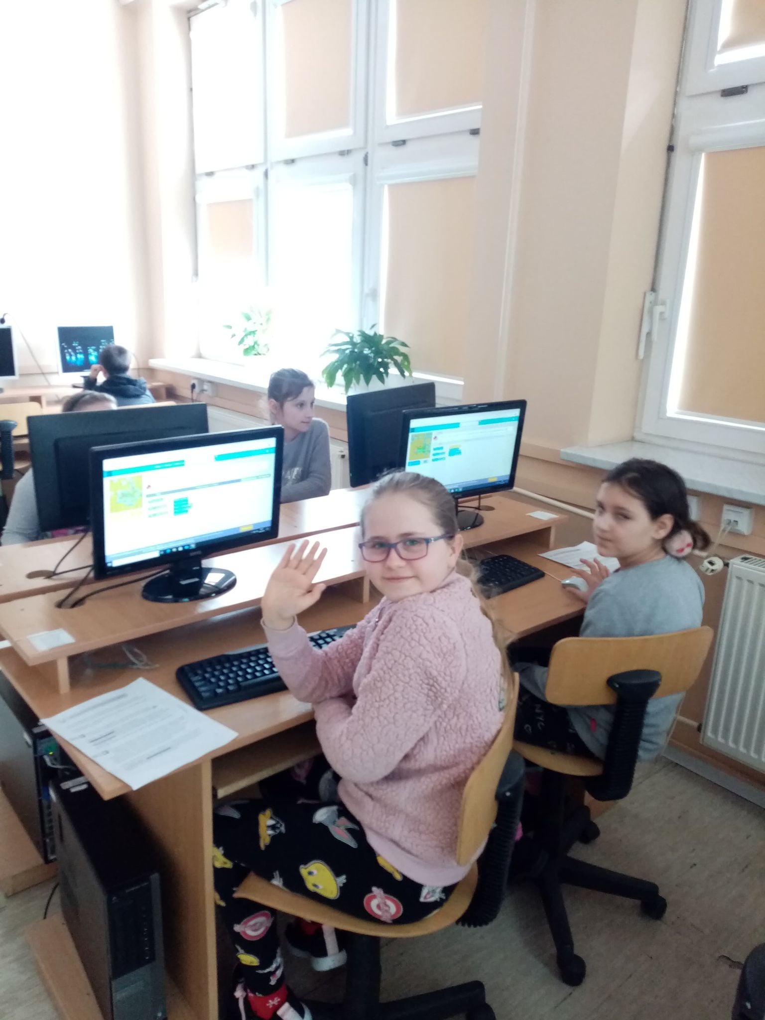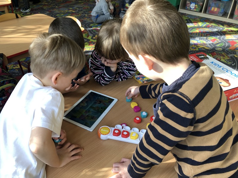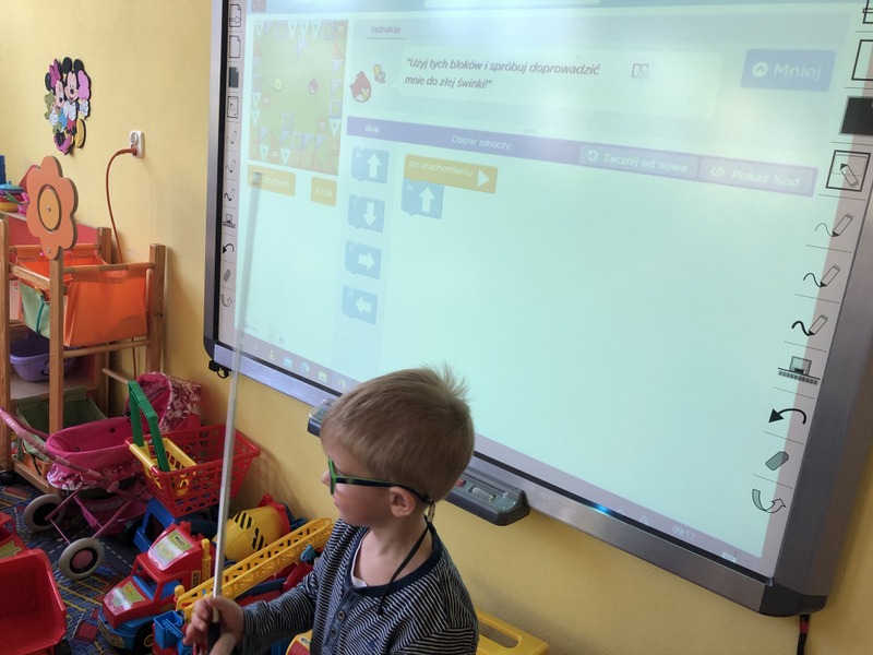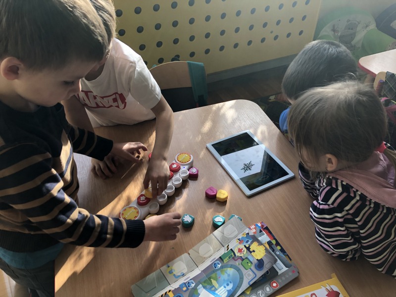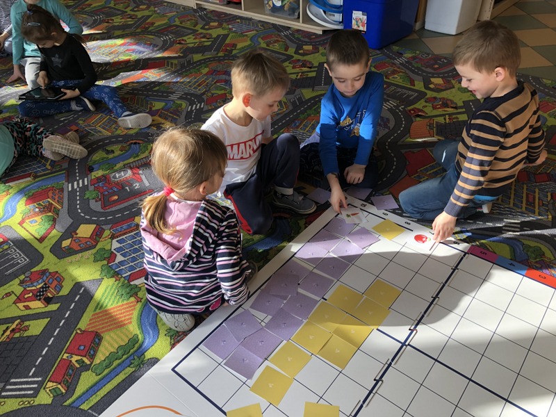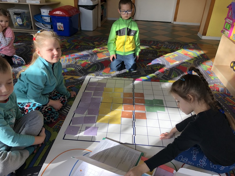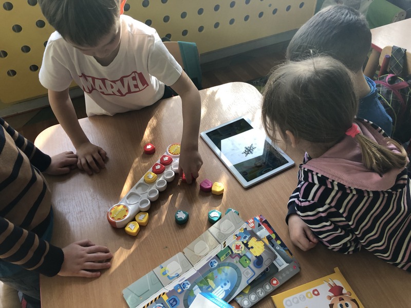 Wszyscy uczniowie naszej szkoły w II semestrze biorą udział w kursie programowania. Szkoła pozyskuje nowoczesne pomoce dydaktyczne mające na celu pomóc uczniom bezpośrednio dostrzec efekty programowania. Projekt realizowany jest przez panią Agnieszkę Miłkowską (klasy I- VIII) oraz panią Ewelinę Kociołek (oddziały przedszkolne) – autorki innowacyjnego programu. Na zdjęciach uczniowie klasa I- III podczas kursu. W rolę robota programowanego przez uczniów wcieliła się Natalka.